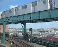 - Схема путевого развития в описываемом районе на сайте nycsubway.org. Локальные пути обозначены красным цветом, уходящие в депо — зелёным. Станция находится в северной части схемы.