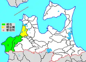 ![]() Расположение уезда Нисицугару (жёлтый цвет) на карте префектуры Аомори | |