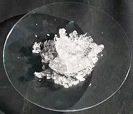 - Нитрат лития можно получить по реакции карбоната лития[2] или гидроксида лития[3] с азотной кислотой: