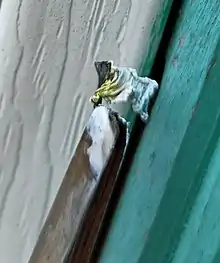 ![]() Магния нитрид (область жёлтого цвета) на полоске магния | |