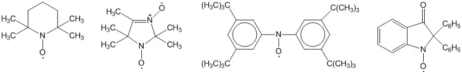 Нитроксильные радикалы, которые характеризуются наличием стерических затруднений вблизи N-O группы (например, обусловленные третичными атомами углерода), отличаются высокой стабильностью и могут быть выделены в свободном состоянии: