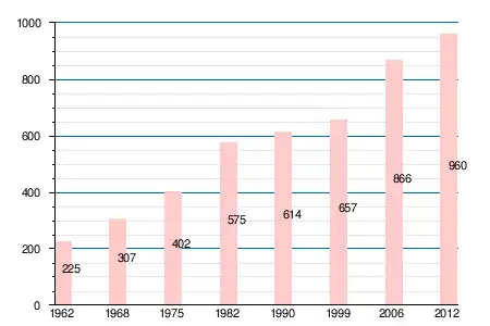 | 1962 | 1968 | 1975 | 1982 | 1990 | 1999 | 2006 | 2008 | 2011 | 2012 |