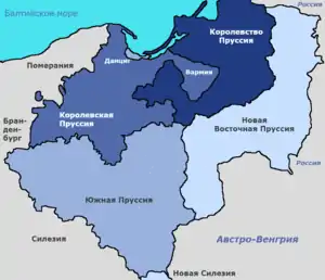 Вошедшая в состав Прусского государства после Третьего польского раздела в 1795 году Новая Восточная Пруссия охватывала земли, расположенные между Восточной Пруссией (бывшим Прусским герцогством) и Вислой, Западным Бугом и рекой Неман и включала в себя части трёх бывших польских воеводств — Подляшского, Мазовецкого и Трокского.