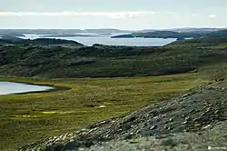Самое большое озеро — Гусиное. В нём водится пресноводная рыба, в частности арктический голец.