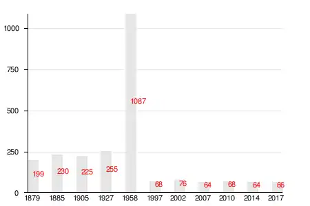 | 1879 | 1885 | 1905 | 1927 | 1958 | 1997 | 2007[14] |