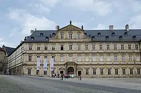 В XVI веке резиденцией бамбергских церковных князей был замок Гейерсверт (Residenzschloss Geyerswörth). В начале XVII века было начато строительство нового дворца. По заказу архиепископа фон Гебсаттеля (Johann Philipp von Gebsattel) в 1605-11 годах были построены два западных крыла здания. Затем строительство было прервано, возобновившись почти через сто лет. В 1697-1703 гг. архиепископом фон Шонборном (Lothar Franz von Schönborn) были построены в стиле барокко еще два крыла. В качестве резиденции дворец служил до конца существования бамбергского княжества — до начала XIX века.