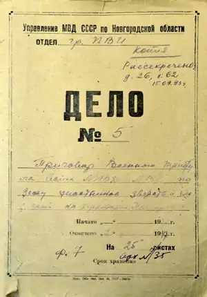 - Через партийно-советское руководство Новгородской области обеспечить освещение судебного процесса в местной прессе, выявлять реакцию местного населения на процесс и информировать об этом МВД и МГБ СССР.