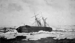 Ближе к полуночи 14 (26[6]) сентября 1863 года — на пост штурмана заступил лейтенант Ф. К. Авелан, заменив старшего офицера корабля лейтенанта С. П. Тыртова; далее, на подходе к Сан-Франциско, когда до берега оставалось около 30 миль, корабль попал в полосу тумана. К 5 часам, около мыса де-Лос-Рейес туман сильно сгустился, и из-за этого видимость не превышала нескольких шагов. Двигаясь дальше корабль сел на камни в точке с координатами: широта — 38 N. долгота — 123 W., потом корвет был разбит волнами. Члены экипажа спаслись, забрав с собой судовые документы и наиболее ценные вещи[1][3].