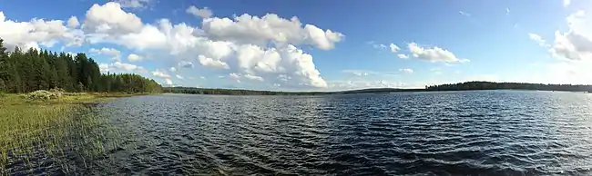 Берега озера несильно изрезанные, каменисто-песчаные, местами заболоченные[1][4].