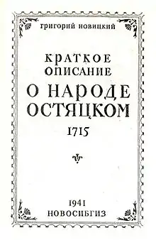 - Новицкий Г. И. Краткое описание о народе остяцком // Памятники древней письменности. — Том 53. — СПб.: Тип. В. С. Балашева, 1884. — VI, 116 с.
