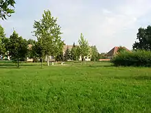 Парк в центре села где ранее была католическая церковь
