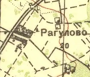 РАГУЛОВО — деревня княгини Порюс-Визапурской, 10 вёрст почтовой, а остальное по просёлочной дороге, число дворов — 9, число душ — 18 м. п. (1856 год)[6]