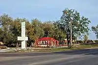 | Закусочная на обочине трассы М-18 на окраине посёлка | Въезд в посёлок с трассы М-18, обелиск колхоза «Заря» и корчма «Козацкий мёд» | Железнодорожная станция Тащенак |