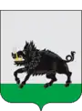 Описание герба: «В серебряном поле с зелёной оконечностью черный идущий кабан с золотыми глазами, клыками и языком».