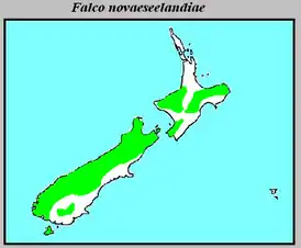 Единственная эндемичная хищная птица Новой Зеландии. Населяет как Северный, так и Южный острова, а также остров Стьюарт и острова Снэрс. Численность новозеландского сокола оценивается в 3000—5000 гнездящихся пар[3][4].