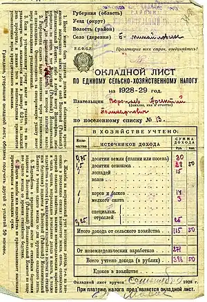 Принудительная коллективизация вызвала катастрофические последствия. Многие крестьяне, не желая отдавать своё имущество в колхозы, уничтожали инвентарь и скот. Поголовье коров и лошадей сократилось на треть, свиней — в два раза, овец — в 2,5 раза. Общая урожайность упала на 10 %[27]. Наступление на деревню, трагедия раскрестьянивания привела к массовым выступлениям крестьян по всей стране. С колхозными активистами и двадцатипятитысячниками жестоко расправлялись. Для подавления крестьянских волнений использовались регулярные армейские части.