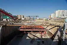 Платформенный участок возводился открытым способом из монолитного железобетона. Проектирование, производство и монтаж опалубки для станционного комплекса выполняли подразделения российской опалубочной компании «СТАЛФОРМ Инжиниринг». Основная часть тоннелей построена закрытым способом, с использованием механизированных тоннелепроходческих комплексов.