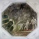 Геометрический рисунок свода архитекторы позаимствовали у римской гробницы Валериев, но по его главной оси укреплены смальтовые мозаики. Они изначально предназначались для станции «Павелецкая», но из-за войны не удалось построить центральный зал, и мозаики становились ненужными. Они были выполнены В. А. Фроловым по эскизам А. А. Дейнеки в блокадном Ленинграде (после гибели художника вывезены из осаждённого города моряками Ладожской флотилии) и посвящены героическому труду советских людей в тылу. Архитектор И. Г. Таранов решил установить их на «Новокузнецкой». Из-за относительно небольшой длины центрального зала удалось установить только семь, а ещё одну установили в вестибюле[9].