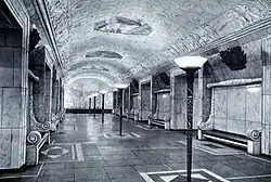 | Архитекторы вестибюлей | В. Г. Гельфрейх, И. Е. Рожин, при участии Г. С. Тосунова и Л. А. Шагуриной | ||