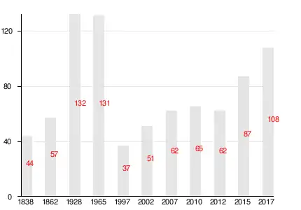 | 1838 | 1862[20] | 1997 | 2007[21] | 2010[22] | 2012[23] | 2015[24] |