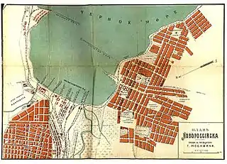 27 сентября 1866 года Новороссийск становится центром Черноморского округа (Черноморское побережье от Тамани до Грузии; до 1896). В городе тогда насчитывалось 430 жителей. В 1882 году вошёл в строй первый цементный завод, в 1888 г. в Новороссийск пришёл первый поезд, в 1893 г. рядом с Новороссийским элеватором вошла в строй первая в мире электростанция трёхфазного тока. С 1896 по 1920 годы Новороссийск — центр Черноморской губернии[23].