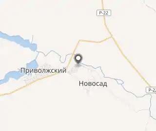 Посёлок Новосад расположен в 1,3 км к востоку от посёлка Приволжский на правом берегу реки Большая Тингута.