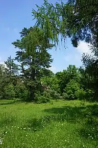 В парке произрастает 41 вид деревьев и кустарников[1]. Основные из них — местные породы дуба, граба, липы, ольхи. На партере также растут лиственницы и сосны[2].