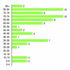| Жителей | 354 | 530 | 550 | 428 | 276 | 201 | 176 | 127 | 67 |