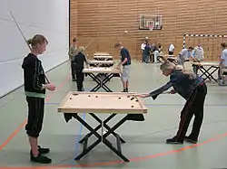 Игровой стол в форме квадрата разделён на четыре игровые зоны, в которых располагаются деревянные пешки двух цветов для каждого игрока. По углам игрового стола находятся четыре лузы. Задачей каждого игрока является с помощью игрового кия и битка «матки» загнать свои пешки, находящиеся на противоположном конце стола, в любую из четырёх луз. Удары по пешкам производятся по очереди. Победителем становится тот, кто первым загнал в лузы все свои пешки.
