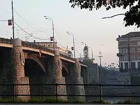 Бетонный Новый мост через Волгу, соединяющий Комсомольский и Тверской проспекты, сооружен в 1953—1956 годах по проекту инженера А. Б. Воловика, институт Лентрансмостпроект. При строительстве были использованы старые чугунные пролёты середины XIX века от бывшего Благовещенского моста, который ранее находился в Ленинградe. В 1939 году в Ленинграде закончилась перестройка старого моста, а хорошо сохранившиеся арочные конструкции из чугуна решили повторно использовать для моста в Калинине, где нужен был второй мост через Волгу. Война 1941-1945 годов задержала строительство. Мост был сдан в эксплуатацию 3 ноября 1956 года. Мосту предполагалось дать название в честь М. И. Калинина, были отлиты и установлены картуши с вензелями «МК» на быках моста, однако это название не получило распространения[2][3].