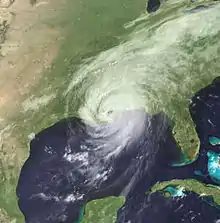 Последствия урагана Катрина, обрушившегося на Новый Орлеан в конце августа 2005 года, были катастрофическими[17]. По мере продвижения урагана со стороны мексиканского залива произошёл коллапс федеральной системы защиты от наводнений, не выдержавшей натиска стихии, что повлекло крупнейшую катастрофу в области гражданской инженерии за всю американскую историю[18]. Перегородки и шлюзы, построенные инженерными войсками США, не справились с превышением расчётной нагрузки, что привело к затоплению 80 % города. К моменту приближения урагана к городу большинство его жителей уже были эвакуированы. Десяткам тысяч жителей, что предпочли остаться, пришлось дожидаться помощи спасателей или проследовать к пунктам помощи при чрезвычайных ситуациях, которыми стали Луизиана Супердоум и конференц-центр Morial.