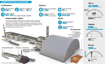 - Описание Арки над объектом «Укрытие» Чернобыль, по данным общественных слушаний по оценке проекта Нового Безопасного Конфайнмента в г. Славутич.
