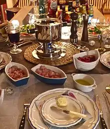 Традиционными блюдами в канун Нового года являются раклет и фондю, которые располагают к длительному ужину и беседе за столом[2][3]. Ранее в новогоднюю ночь к столу подавали карпа, но сейчас эта традиция менее распространена. Существует мнение, что серебристая чешуя карпа принесет много денег в новом году. Также популярны другие рыбные блюда, например, красный салат из сельди.