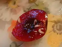 Личинки вишнёвой мухи Rhagoletis cerasi. Личинки многих мух живут внутри их пищи или рядом с ней. Перемещаются они ползая и ног не имеют. |