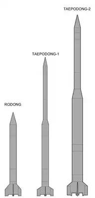 Одноступенчатые баллистические ракеты, известные в двух вариантах, обозначаемых «Нодон-1» и «Нодон-2» и отличающихся массами боевого оснащения и, соответственно, дальностью. Для самоходной пусковой установки использовано 5-осное шасси, напоминающее удлинённый вариант шасси МАЗ-543 советского РК 9К72 «Эльбрус» (широко известен, как «Скад»). Подъёмное устройство СПУ, стартовый стол и расположение кабин также практически идентичны СПУ 9П117 комплекса «Эльбрус». По мнению ряда источников, на базе этой ракеты созданы иранская ракета «Шахаб» и пакистанская «Гаури».