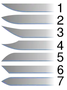 - Если клинок к своему концу сходится клинообразно в одну точку, точку именуют «остриём» клинка.