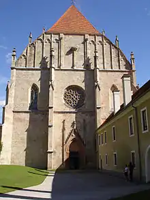 Готическая церковь монастыря была построена в XIV—XV веке, завершена в 1496 году. Деревянная крыша первой половины XV века построена из более чем 1100 м³ лиственницы, это самое большое сооружение подобного рода в немецкоязычном мире. В убранстве особо выделяются богато декорированный барочный алтарь 1612 года, статуя Богоматери из песчаника и несколько боковых готических капелл.