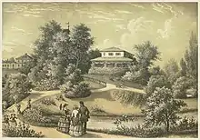 Комплекс окружён старинным замковым парком, созданным в своё время по проекту известного немецкого ландшафтного дизайнера Эдуарда Петцольда.