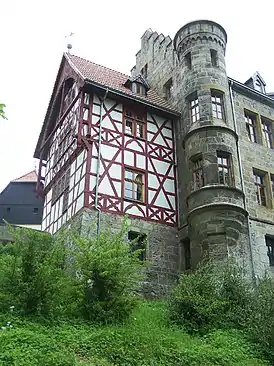 Замок находится рядом с историческим центром поселения Нойенхоф в Тюрингии на высоком берегу реки Верра в Тюрингии. Совсем рядом с замком находится местная церковь. К западу от Ноейхофена расположены руины крупной крепости Бранденбург, а к юго-востоку — знаменитый Вартбургский замок.