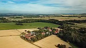 Соседние населённые пункты: на севере — деревня Копорцы, на юго-востоке — деревня Блоцаны, на юге — деревня Жорносыки, на юго-западе — деревни Вуежк-под-Чорнобогом и Новы-Вуежк и на северо-западе — административный центр коммуны Хохкирх[2].