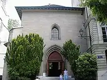 В Женеве Нокс вёл насыщенную жизнь. Он читал три проповеди в неделю, каждая продолжалась более двух часов. В богослужении использовалась литургия, взятая Ноксом и другими служителями из книги Кальвина Formes des Prières Ecclésiastiques[комм. 9]. Церковь, в которой он проповедовал, Église de Notre Dame la Neuve, ныне известная как Auditoire de Calvin, была предоставлена городскими властями по просьбе Кальвина для использования английскими и итальянскими общинами. Два сына Нокса, Натаниэль и Элеазар, родились в Женеве, вместе с Уиттингемом и Майлзом Ковердейлом, их крестными отцами[86].