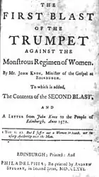 - The First Blast of the Trumpet Against the Monstruous Regiment of Women (1558), «Первый звук трубы против чудовищного правления женщин»