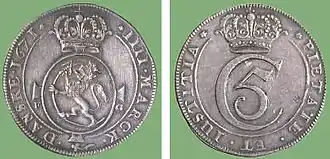 Монеты в марках чеканили Олаф Энгелбректссон и Кристиан III (1534—1559). Кристиан IV (1588—1648) и последующие правители чеканили только кратные номиналы. Номинал монет, соответствующих одной марке, обозначался в скиллингах. Кристиан IV чеканил монеты в 2 марки, Фредерик III (1648—1670), Кристиан V (1670—1699) и Фредерик IV (1699—1730) — в 2 марки и 4 марки. Кристиан VI (1730—1746) чеканил монеты в 4 и 6 марок, Фредерик V (1746—1766) и Кристиан VII (1766—1808) — в 6 марок[5][6][7].