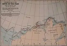 | Свободное плавание «Фрама», июль — сентябрь 1893 Дрейф «Фрама», сентябрь 1893 — август 1896 Санный поход Нансена и Йохансена, март 1895 — июнь 1896 Возвращение Нансена и Йохансена, август 1896 Плавание «Фрама» в Тромсё, август 1896 | |