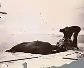 Нансен не упускал ни одной возможности пополнить собственный опыт: хотя снаряжение для санных походов было заказано по образцам, оправдавшим себя в Гренландии, после возвращения Пири в 1892 году, Фритьоф запросил у него информацию по использованию саней эскимосского образца, поведения изделий из алюминия в экстремальных холодах, и т. д. Оказалось, что Роберт Пири использовал нарты конструкции Нансена и был крайне сдержан, считая его соперником в борьбе за полюс. Гораздо больше сведений Нансен получил от участника американской экспедиции — своего соотечественника Эйвина Аструпа, который убедил Фритьофа сделать ставку на ездовых собак. Первоначально собак было решено заказать на Аляске, но поскольку изменился маршрут, пришлось обращаться в Канаду и Гренландию. Эти попытки не увенчались успехом, поэтому на помощь пришёл барон Толль, который заказал для Нансена сибирских ездовых животных. Немалую роль в успехе этого предприятия сыграл шведский посол в Петербурге Густав Рейтершельд[84]. Нансен отказался от телемаркских лыж, пригодных для бега, взамен использовав крестьянскую модель из Сельбю (в центральной Норвегии), узкие, с сильной седловатостью у креплений. Длина их достигала 350 см; большую часть партии лыж изготовил мастер Фриц Юйфельдт — зять сводной сестры исследователя[78]. Нансен использовал самый простой тип лыжных креплений — саамский, представлявший собой ремень, крепившийся к прорези сбоку лыжи, который охватывал обувь с носка и пятки; узлы или пряжки отсутствовали. Этот тип креплений был достаточно надёжным и позволял надеть или сбросить лыжу почти мгновенно[85].