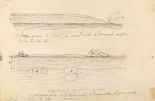 На «Фраме» было восемь шлюпок, в том числе два баркаса длиной в 8,8 м, имеющие палубы и оснащённые парусным вооружением. Они предназначались для продолжения дрейфа в случае гибели судна, поскольку могли вместить весь экипаж и большие запасы провианта и топлива. Имелись четыре китобойных вельбота длиной 6,3 м, два из дубовой древесины, два — из вязовой, а также прам и моторный катер[40]. Последний принёс много хлопот и со временем был разобран, а его вязовые доски пошли на изготовление лыж и нарт. Баркасы располагались на главном трюмном люке, вельботы висели на шлюпбалках, моторный катер и прам были закреплены на палубе[41].