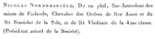 - Орден Святого Станислава 2-й степени (12 августа 1835)