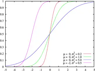 Нормальное распределение с плотностью средним и отклонением имеет следующую функцию распределения: