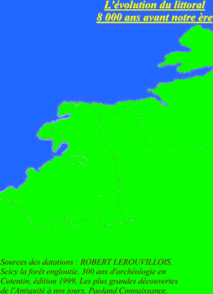 Около 6000 года до н. э. уровень моря повысился и образовался пролив Ла-Манш. Вслед за Великобританией, часть Нормандии отделилась от континентальной Европы и превратилась в острова Гернси и Джерси[7]. Позже на их берегах поселились неолитические племена, которые построили дольмены и менгиры