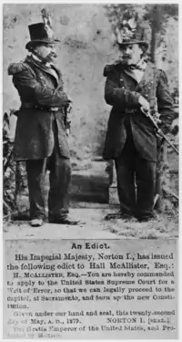 «Нортон I, император Соединённых Штатов и протектор Мексики».